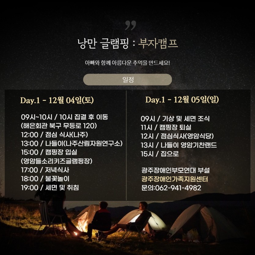 ●자부담: 5만원, 농협 301-0113-7266-11, 광주장애인가족지원센터