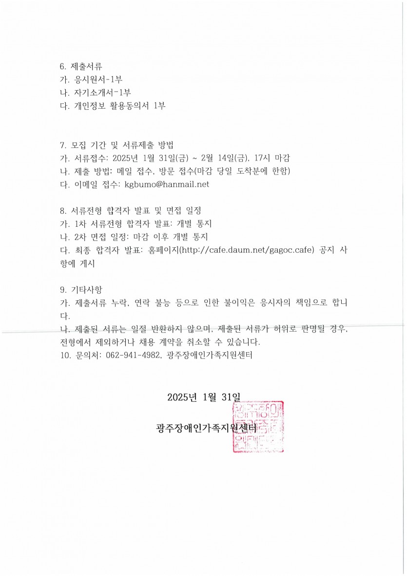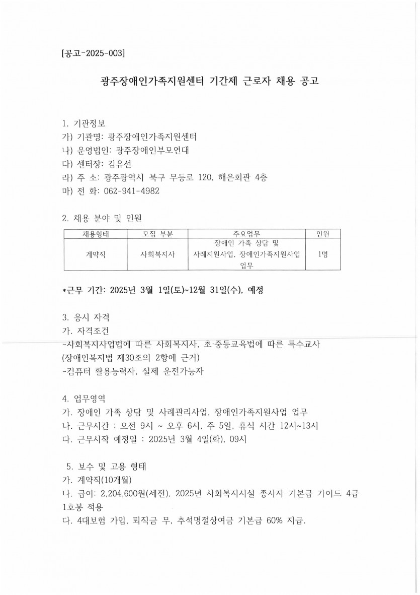 공지사항 <공고-2025-003>광주장애인가족지원센터 기간제 근로자 채용 공고