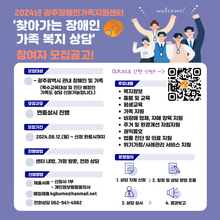 광주장애인가족지원센터에서 2024년 '찾아가는 장애인 가족 복지 상담' 참여자를 모집합니다.