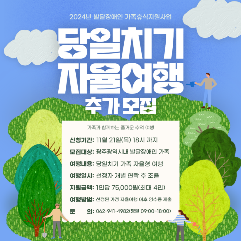 2024년 발달장애인 가족휴식지원사업 당일치기 자율여행 추가 모집 안내