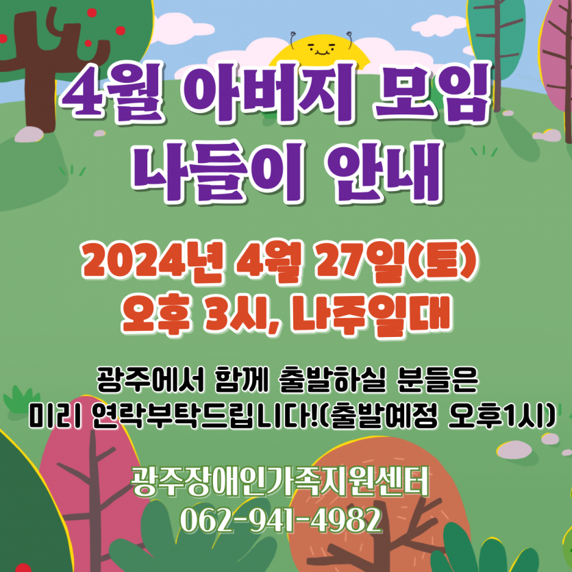 - 이전글공지사항 [모집 마감] 2024년 발달장애인 가족휴식지원사업 모집 안내 -광주장애인가족지원센터 25.03.13