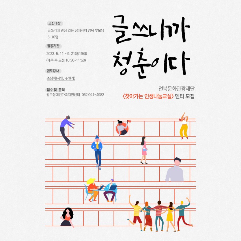 공지사항 글쓰니까 청춘이다! 부모님 자조모임 안내 !-광주장애인가족지원센터#전북문화관광재단