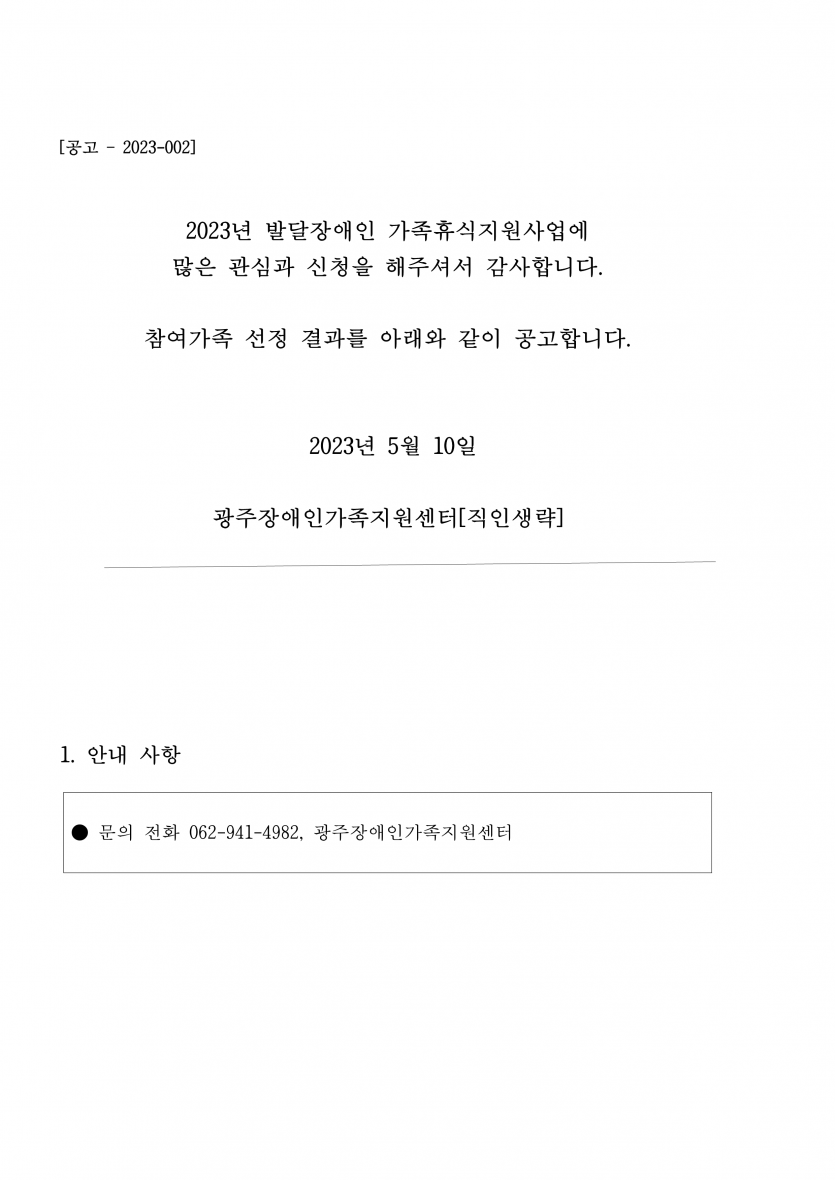 2023년 발달장애인 가족휴식지원사업 전주 나들이 선정 안내